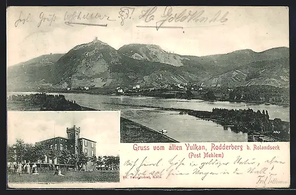 AK Mehlem-Rolandseck, Burg mit Gasthaus, Alter Vulkan Rodderberg