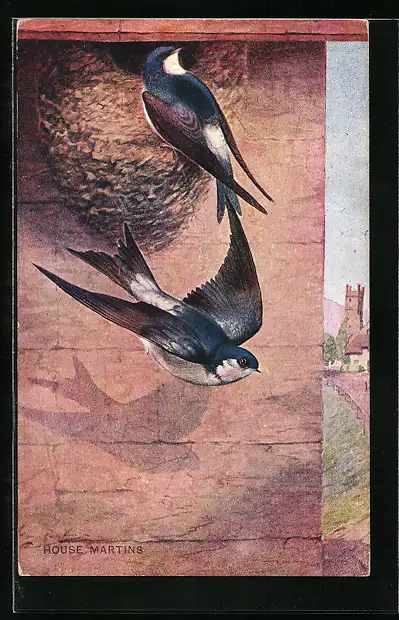 AK Mehlschwalben an ihrem Nest, House Martins