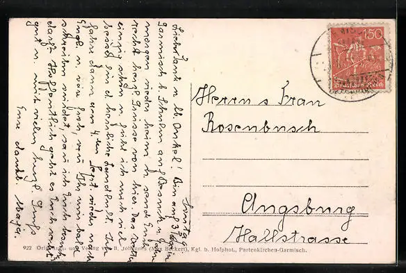alte Ansichtskarte, gelaufen 1922, guter Zustand