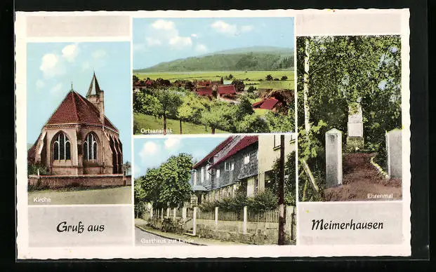 AK Meimerhausen, Ortsansicht, Kirche, Gasthaus zur Linde, Ehrenmal
