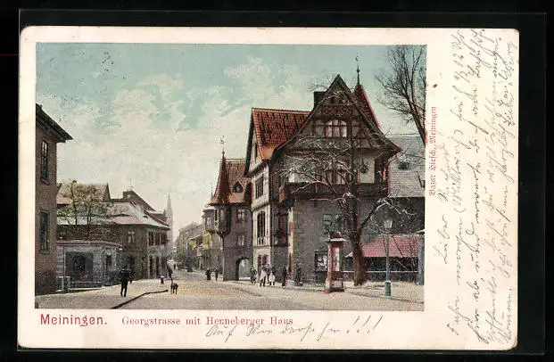 AK Meiningen, Georgstrasse mit Henneberger Haus