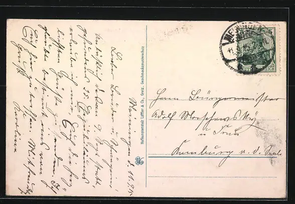 alte Ansichtskarte, gelaufen 1915, Eckknicke unten, guter Zustand