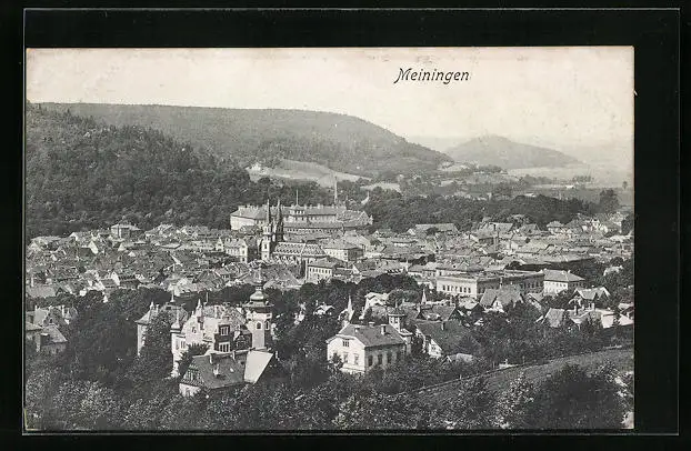 AK Meiningen, Panoramablick vom Berg aus