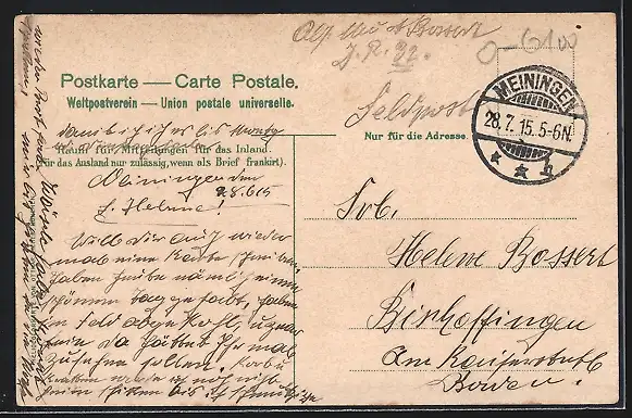alte Ansichtskarte, gelaufen 1915, Eckknick unten li., guter Zustand