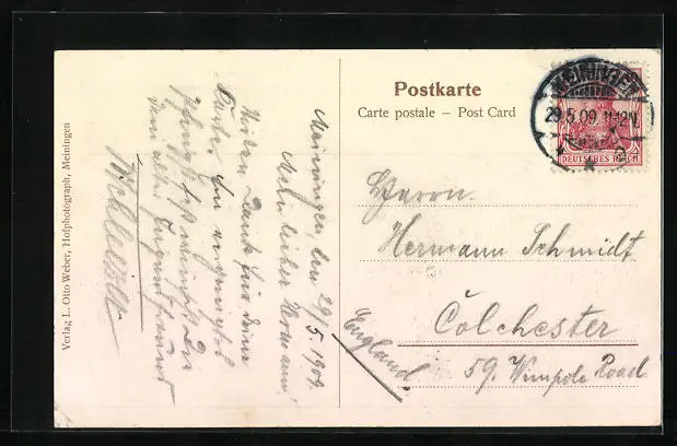 alte Ansichtskarte, gelaufen 1909, guter Zustand