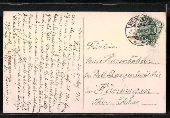 alte Ansichtskarte, gelaufen 1913, Albumspuren, guter Zustand
