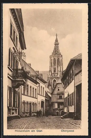 AK Meisenheim am Glan, Strasse Obergasse mit Kirche