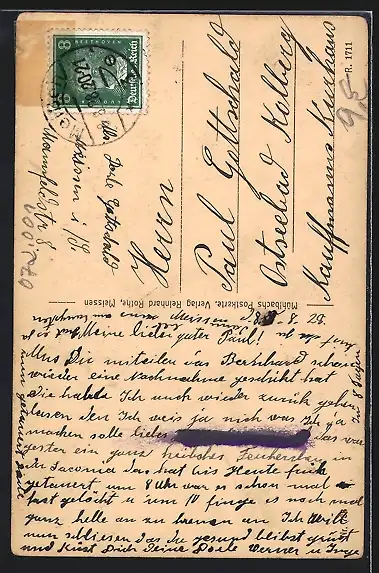 alte Ansichtskarte, gelaufen 1928, Eckknick re. oben, rückseitig Klebe- und Papierreste, Stempelspur, guter Zustand