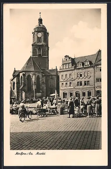 AK Meissen /Sa., Markt mit Kirche