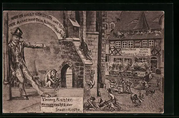 AK Meissen, Stadtkirche mit Vincenz Richter's Gasthaus
