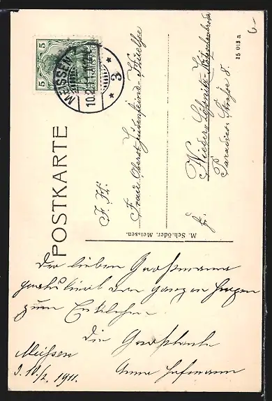 alte Ansichtskarte, gelaufen 1911, minimaler Eckschaden re. oben, guter Zustand