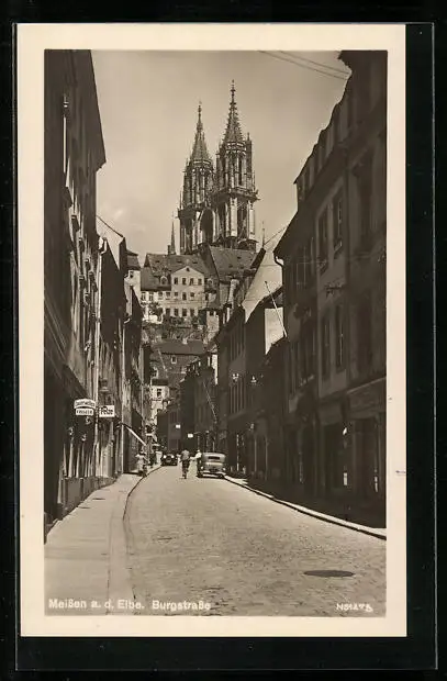 AK Meissen a. d. Elbe, Partie aus der Burgstrasse
