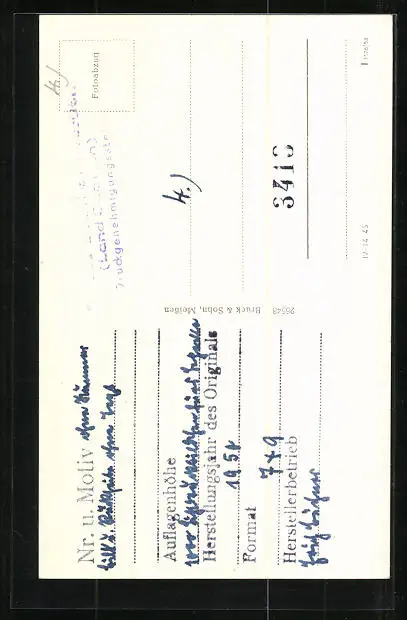 Personenbezogene Daten auf der Rückseite der Karte wurden durch blauen Textmarker unkenntlich gemacht. Die blauen Stellen sind auf die Vorderseite durchgeweicht und wirken sich negativ auf das Postkartenfoto aus