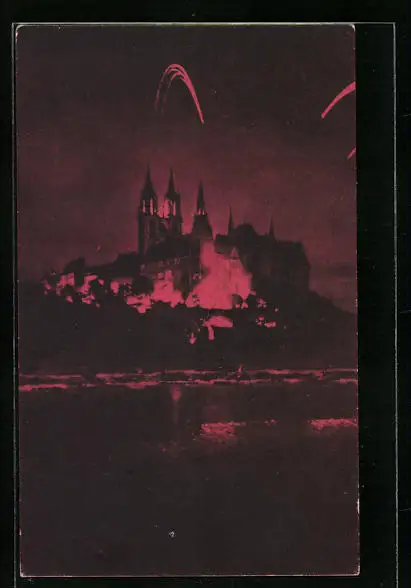 AK Meissen, die Burg mit Burgbeleuchtung