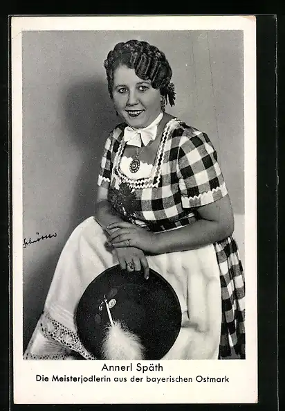 AK Meisterjodlerin Annerl Späth in Tracht mit Hut