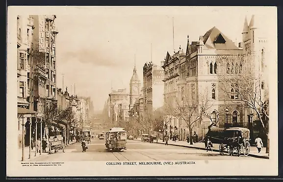 AK Melbourne, Collins Street, Strassenbahn