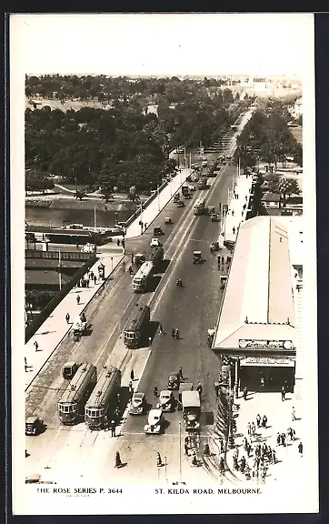AK Melbourne, St. Kilda Road, Strassenbahn