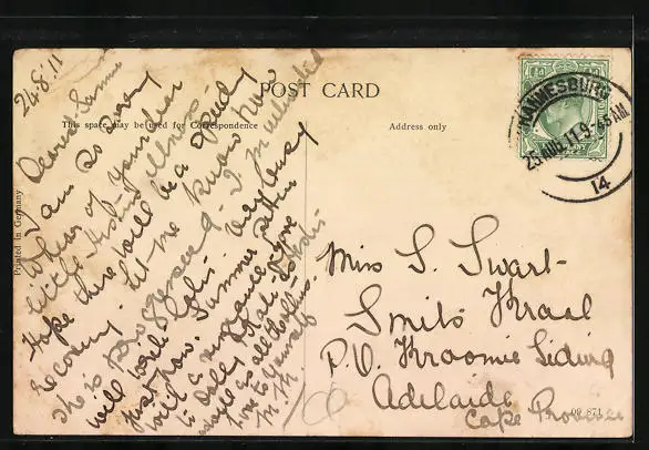 gelaufen 1911, Eckknicke li. und oben, guter Zustand