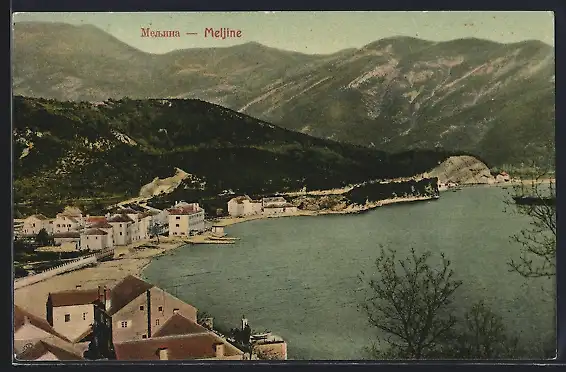 AK Meljine, Ortsansicht mit Hafen
