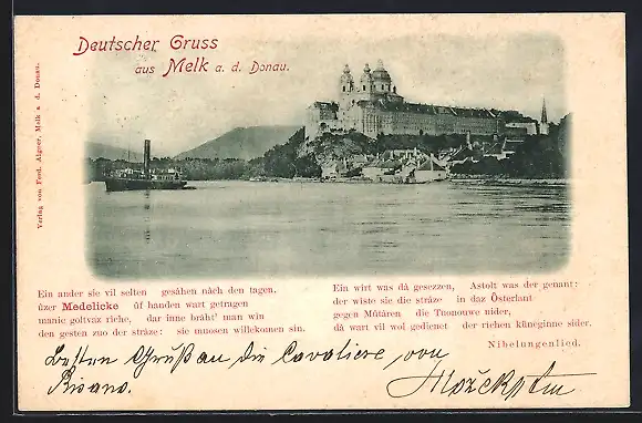 AK Melk a. d. Donau, Donaupartie mit Stift