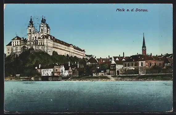 AK Melk a. d. Donau, Ortsansicht, Panorama mit Stift und Kirche