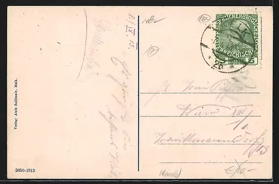 alte Ansichtskarte, gelaufen 1913, Stempelspur, guter Zustand