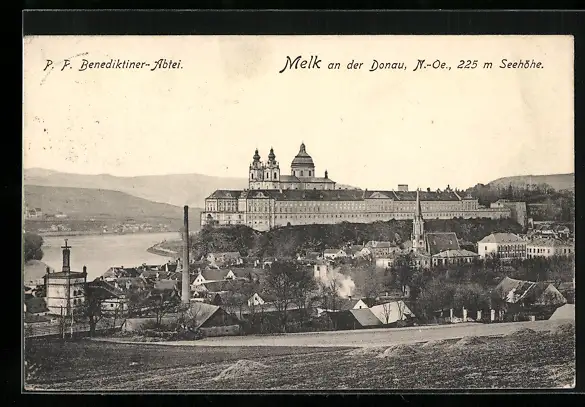 AK Melk a. d. Donau, Ortsansicht mit Benediktiner-Abtei