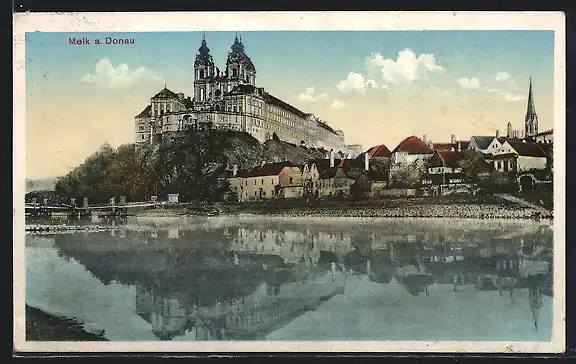 AK Melk a. d. Donau, Ortsansicht mit Donau