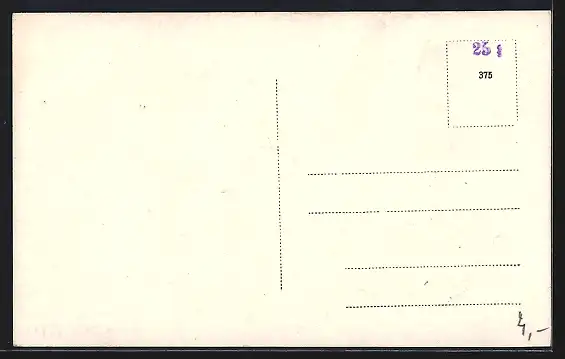 Personenbezogene Daten auf der Rückseite der Karte wurden durch blauen Textmarker unkenntlich gemacht. Die blauen Stellen sind auf die Vorderseite durchgeweicht und wirken sich negativ auf das Postkartenfoto aus