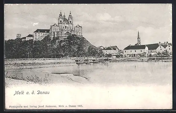 AK Melk a. d. Donau, Uferpartie mit Stift