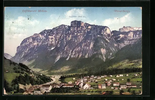 AK Mellau, Panorama mit Gebirgswand