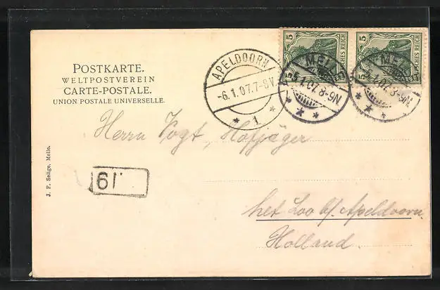 alte Ansichtskarte, gelaufen 1907, guter Zustand
