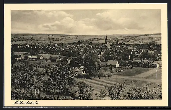 AK Mellrichstadt, Teilansicht mit Bäumen