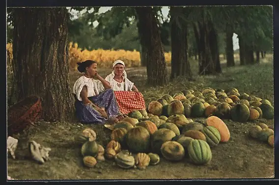 AK Melonenhändlerinnen mit Ware am Strassenrand