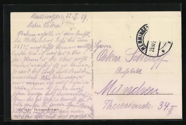 alte Ansichtskarte, gelaufen 1929, Briefmarke entfernt, guter Zustand