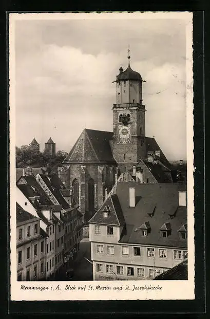 AK Memmingen i. A., Blick auf St. Martin und St. Josephskirche