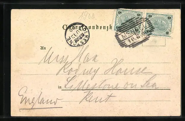 alte Ansichtskarte, gelaufen 1900, Eckknick unten links, guter Zustand