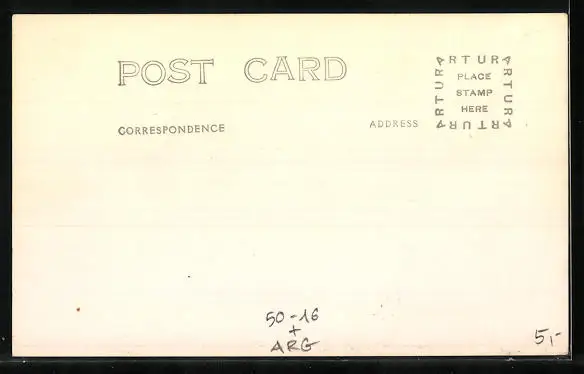 Personenbezogene Daten auf der Rückseite der Karte wurden durch blauen Textmarker unkenntlich gemacht. Die blauen Stellen sind auf die Vorderseite durchgeweicht und wirken sich negativ auf das Postkartenfoto aus