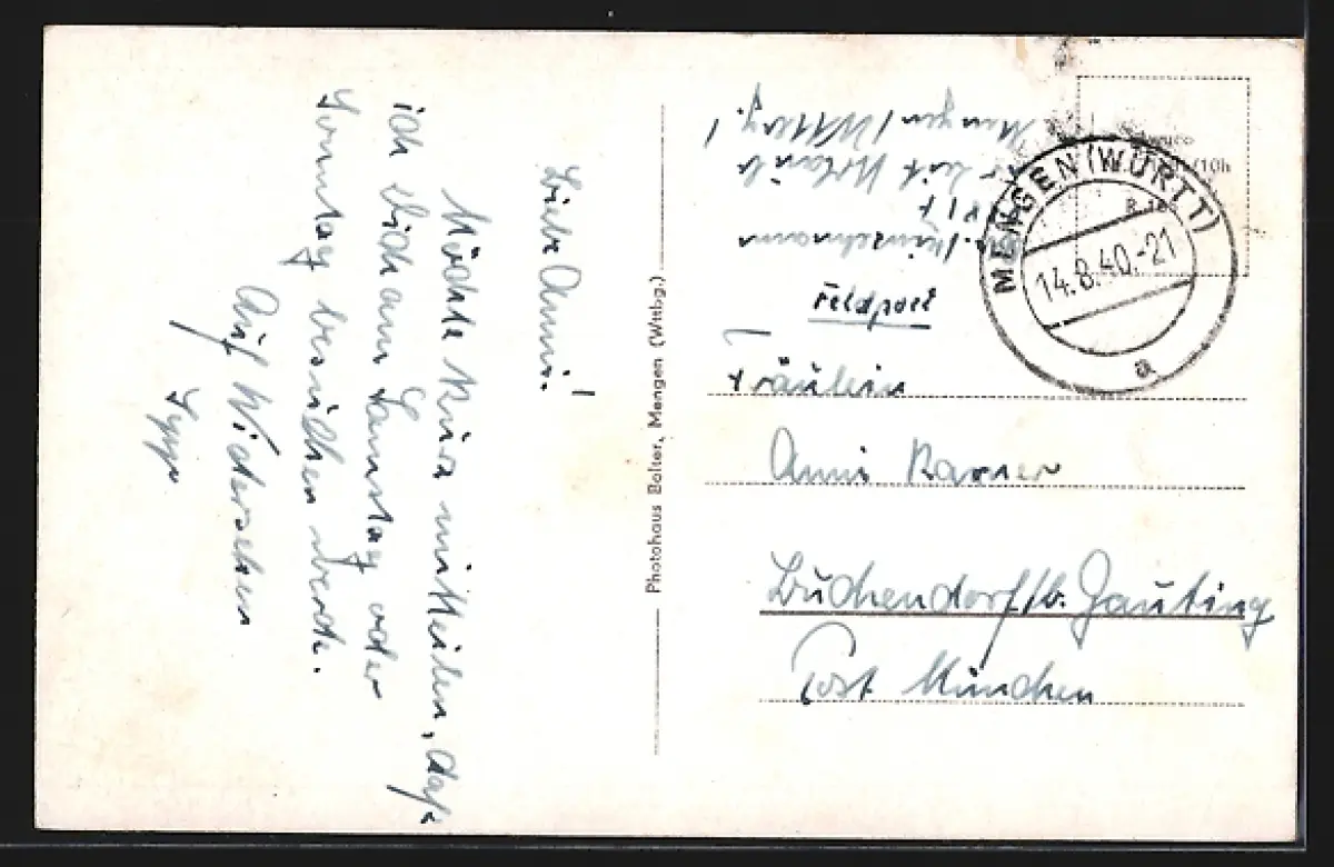 alte Ansichtskarte, gelaufen 1940, Einriss li. oben, guter Zustand