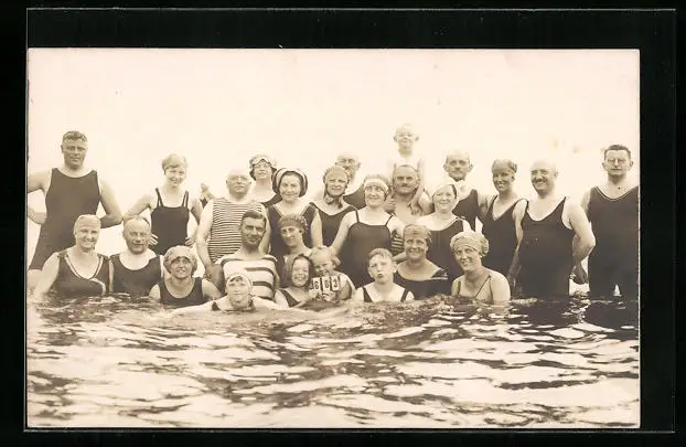 AK Menschen in Bademode gemeinsam am Strand abgelichtet