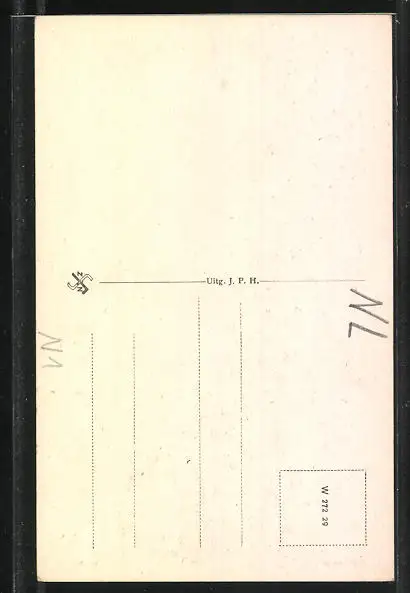 Personenbezogene Daten auf der Rückseite der Karte wurden durch blauen Textmarker unkenntlich gemacht. Die blauen Stellen sind auf die Vorderseite durchgeweicht und wirken sich negativ auf das Postkartenfoto aus