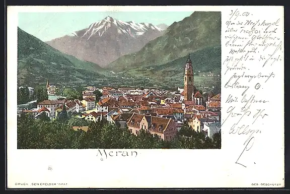 AK Meran, Blick über die Dächer der Stadt, um 1900