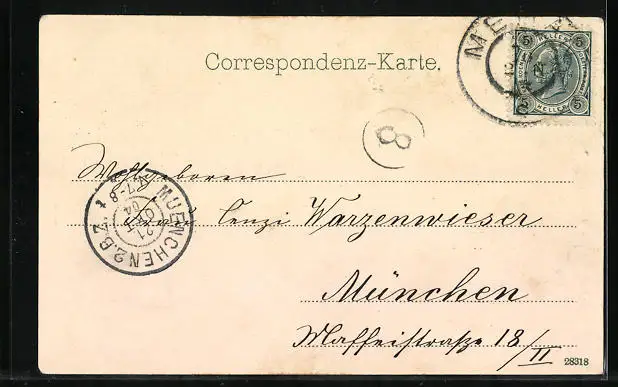 alte Ansichtskarte, gelaufen 1904, Eckknick unten links, guter Zustand