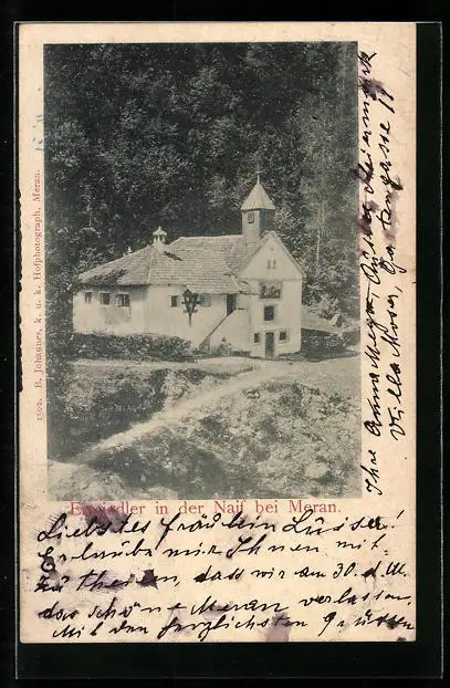 AK Meran, Einsiedler in der Naif, Ortspartie mit Kirche