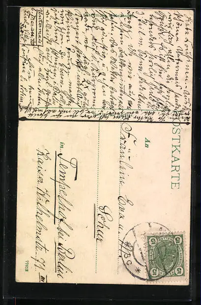 gelaufen 1908, Eckknick oben rechts, guter Zustand