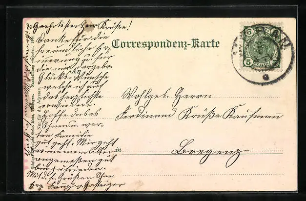 Personenbezogene Daten auf der Rückseite der Karte wurden durch blauen Textmarker unkenntlich gemacht. Die blauen Stellen sind auf die Vorderseite durchgeweicht und wirken sich negativ auf das Postkartenfoto aus