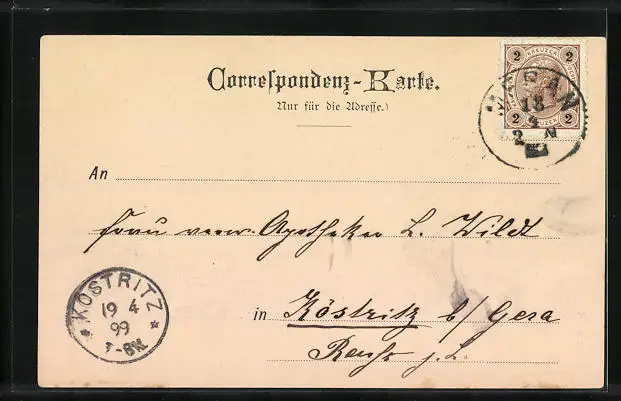 alte Ansichtskarte, gelaufen 1899, guter Zustand