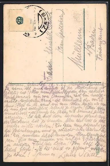 alte Ansichtskarte, gelaufen, Briefmarke entfernt, rückseitig Oberflächenschaden, guter Zustand