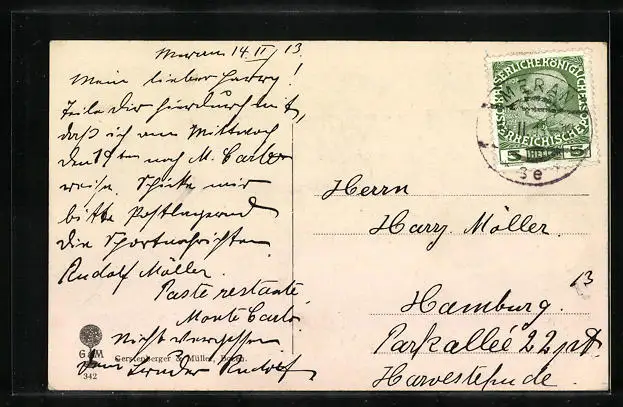 alte Ansichtskarte, gelaufen 1913, guter Zustand