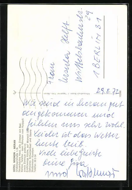 alte Ansichtskarte, gelaufen 1972, Briefmarke entfernt, Eckknick re. oben, guter Zustand